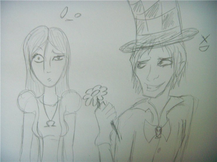 | хде второй глаз у Алисы и Шляпника на первой картинке? О_______О это удивляет меня даже больше, чем то что шляпник чешет Алису своими железными ручками)) "Please, don't dawdle, Alice." XD ну и рожа у Алисы)) типа сказали: "А что это ты так на Шляпника влюбленно смотришь?))"