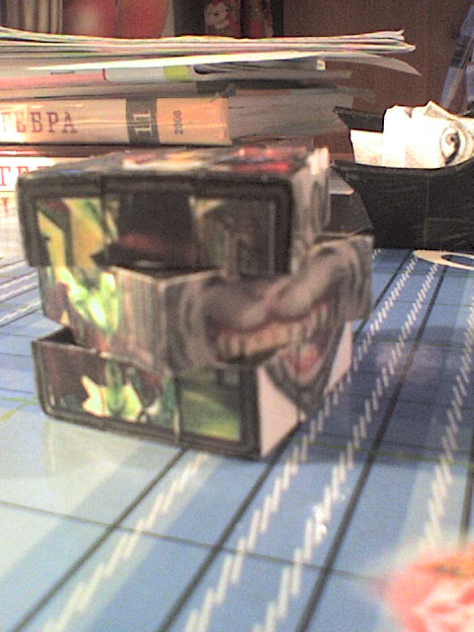 | На фоне учебника по алгебре за 11клас Кубик рубик--самое оно... Рисовали или клеили?