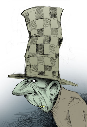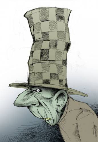 | Ну у него и рожа, как будто своего ртутного чайку только что выпил